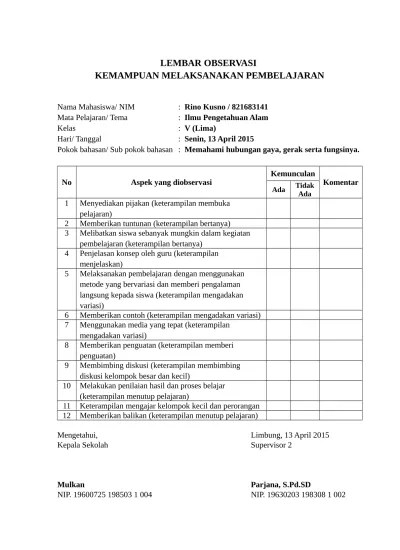 Pembelajaran di kelas dengan mengisi form pkm pgsd 1 menilai laporan pkm yang .