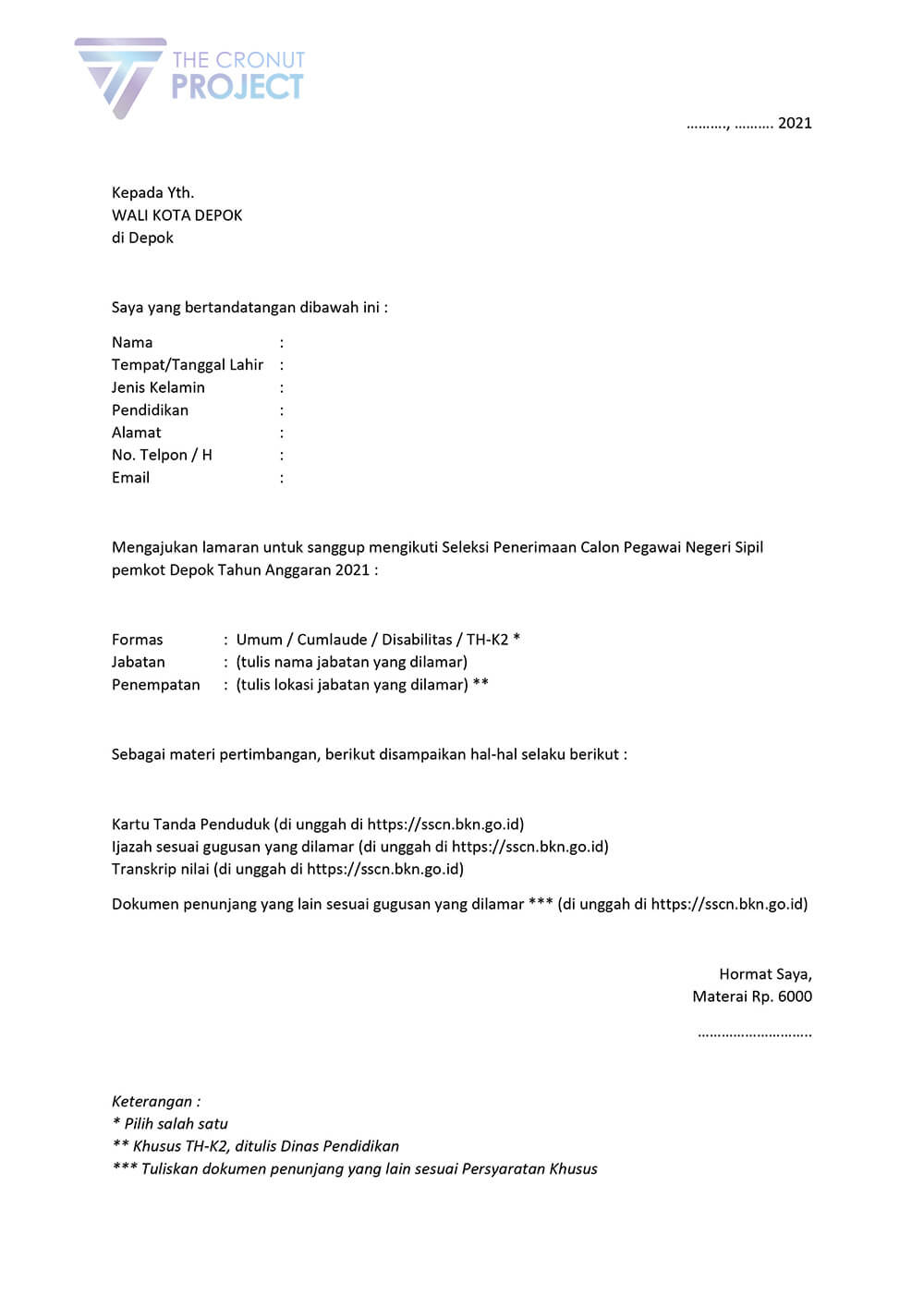 Secara garis besar surat lamaran daftar cpns 2021 hampir . 1) surat keterangan dari dokter rumah sakit pemerintah/puskesmas. Pegawai negeri sipil (cpns) di lingkungan bkn, dengan ketentuan sebagai. Pelantikan dan pengambilan sumpah jabatan pejabat pimpinan tinggi pratama (sekretaris daerah) kota . 2021 tentang penetapan kebutuhan pegawai aparatur sipil negara di lingkungan.
